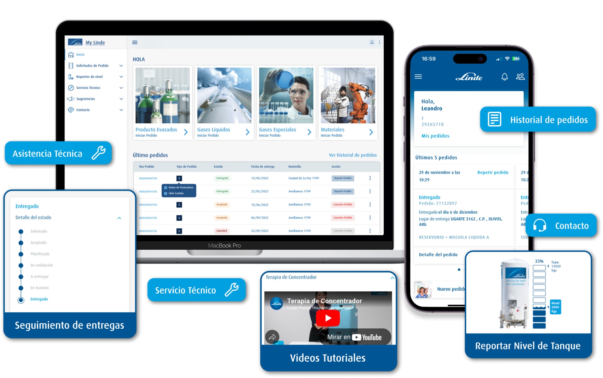 Accede fácilmente a tus gestiones, hace pedidos, consulta tu historial de pedidos y mucho más. Pensado para facilitar tu día a día, My Linde está diseñada para brindar un servicio más completo y eficiente. Estamos comprometidos en ofrecer soluciones tecnológicas que faciliten la experiencia de nuestra comunidad, acercándonos más a ellos.